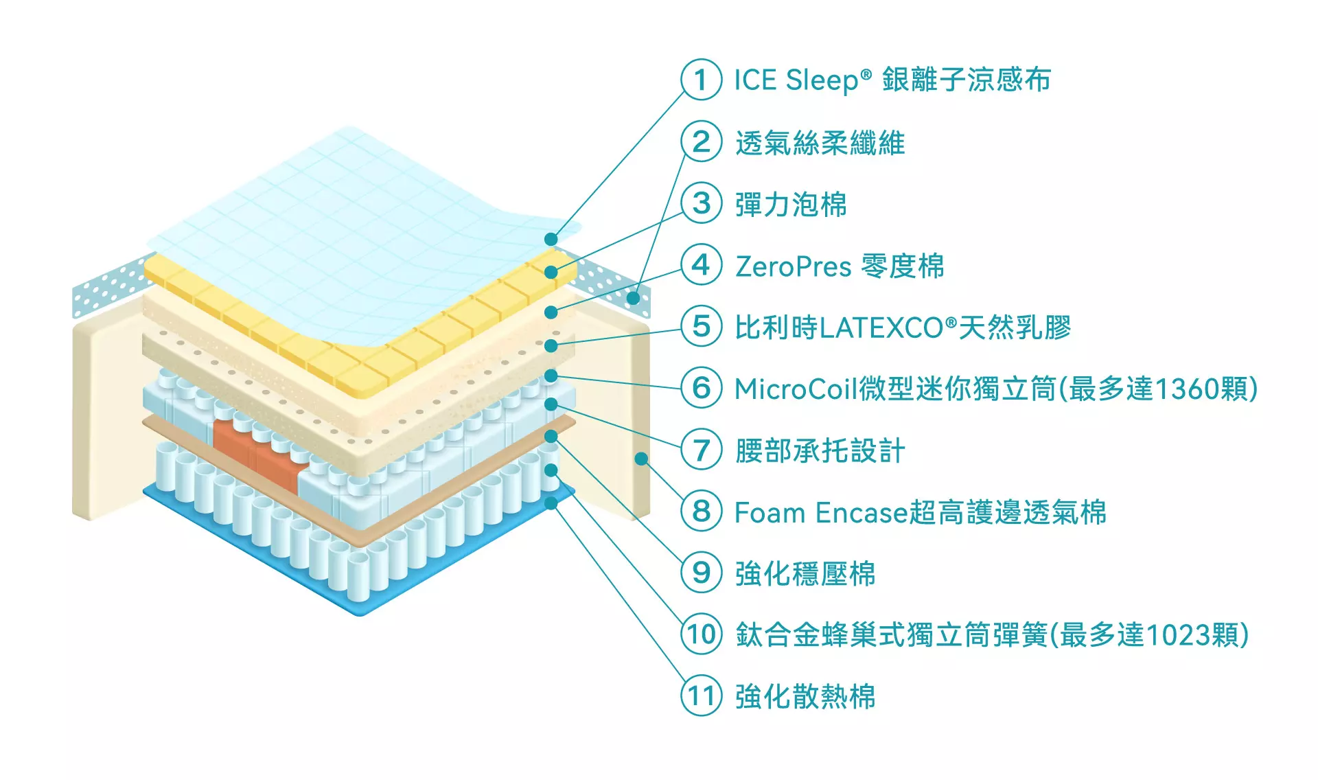 • 適合族群:追求高舒適度、注重防蟎抗菌、喜歡Q彈睡感、對彈簧噪音敏感的人。