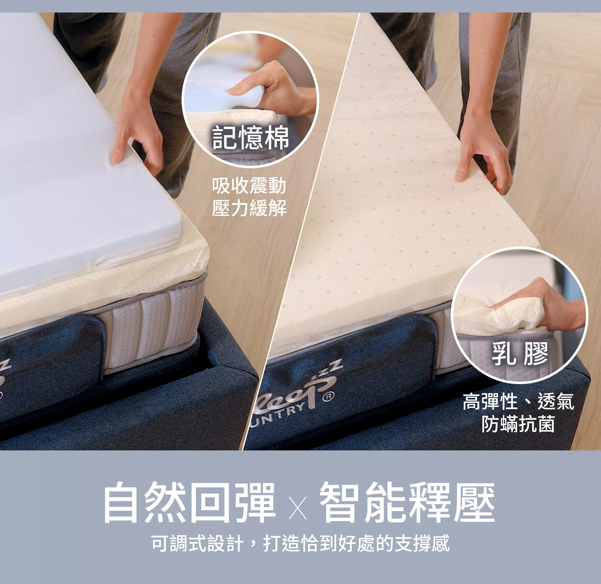 ❾ 「記憶棉/乳膠」上下可調式設計,提供不同需求的睡感